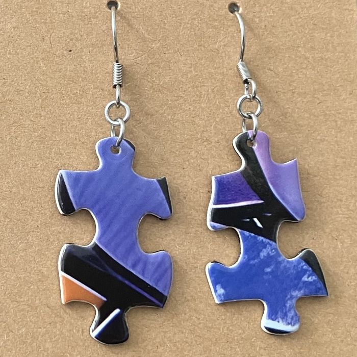 Tin canisters and puzzle pieces turned into eclectic earrings.