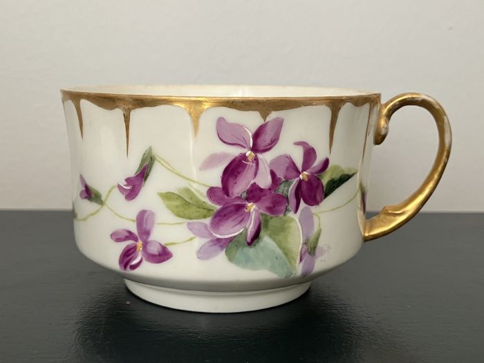 This teacup had beautiful hand-painted violets, several cracks meant its use for teatime was over.
